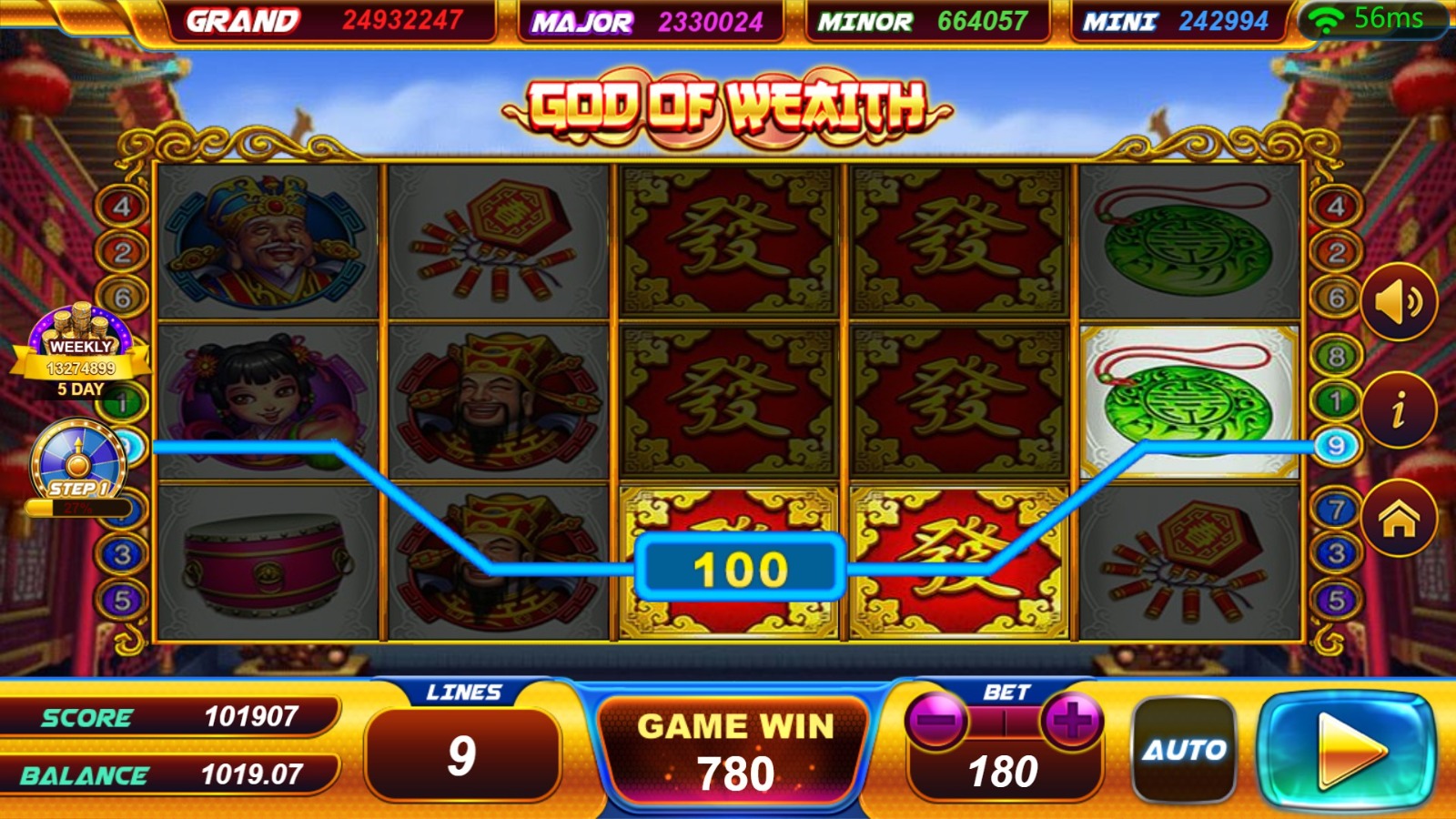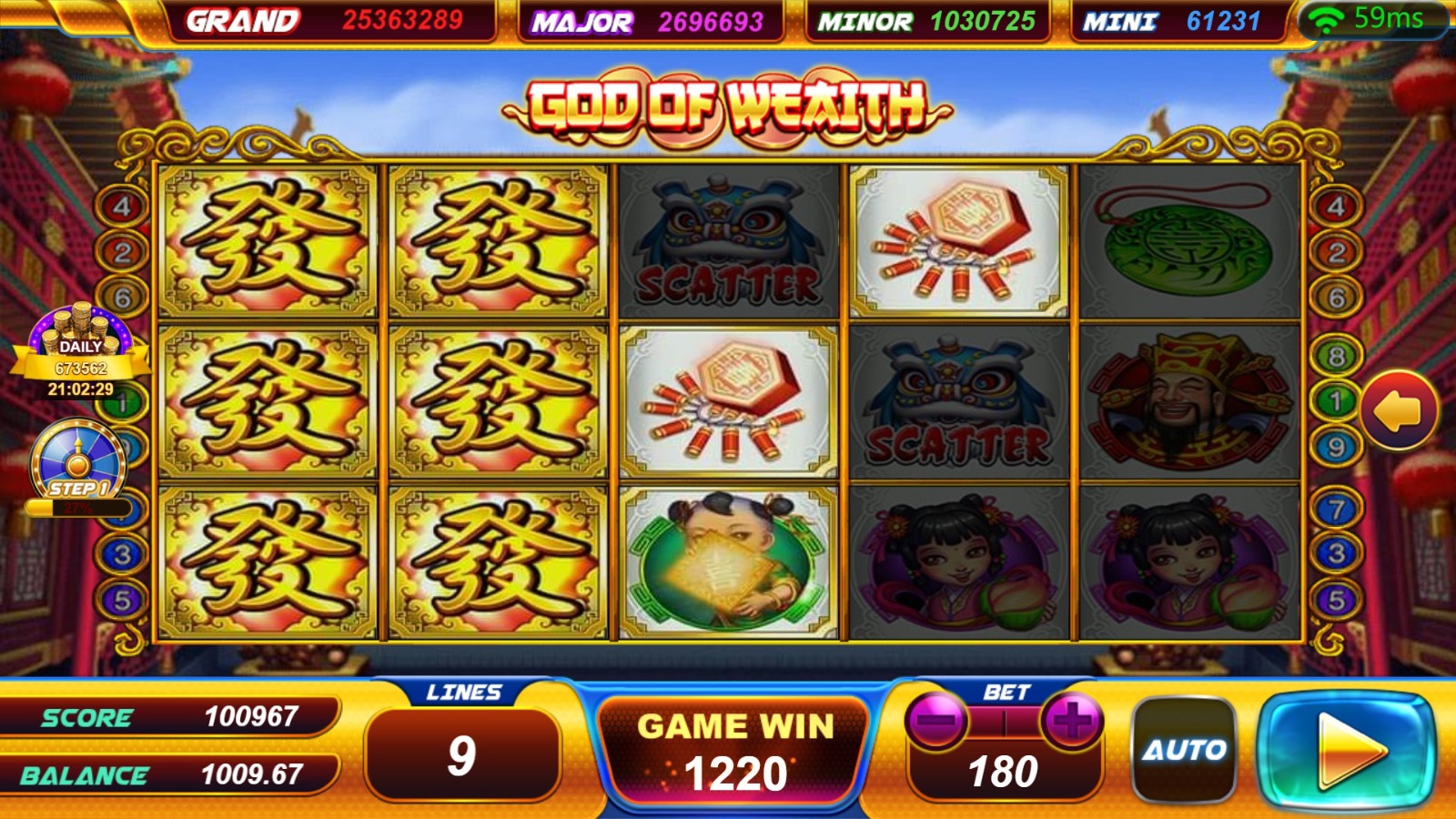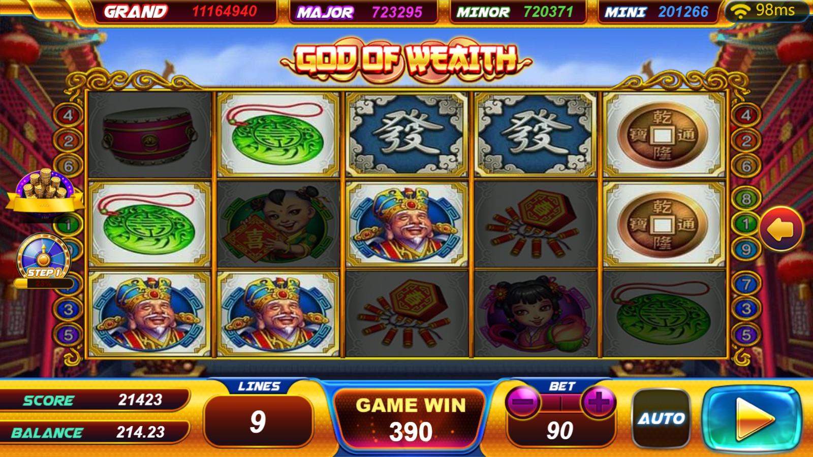 God of Wealth is an exciting slot game that embraces the theme of prosperity and fortune. Developed by a reputable provider, it offers an engaging and visually captivating gaming experience. The game showcases symbols associated with wealth and luck, such as golden ingots, lucky coins, and the God of Wealth himself. With its traditional slot format, players can expect five reels and multiple pay lines. Special symbols like wilds and scatters enhance gameplay by unlocking bonus features and increasing the chances of winning. The standout feature is the Wealth Free Spins round, triggered by specific scatter combinations, where players can enjoy a set number of free spins and additional bonus symbols for greater potential payouts. God of Wealth appeals to players seeking both excitement and prosperity. Immerse yourself in a world of abundance and let the God of Wealth guide you towards fortunes as you spin the reels in this captivating slot game.